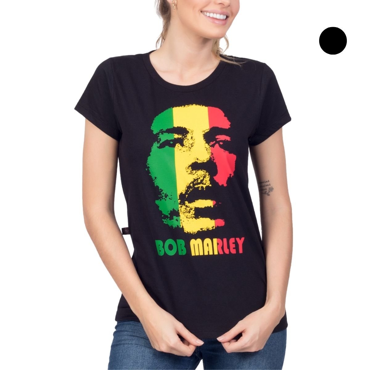 A T-shirt Feminina Bob Marley Reggae é aquele básico must-have. Essa camiseta tem corte ajustado ao corpo, manga curtinha, gola redonda e estampa frontal. Uma peça que fica bem em praticamente todos os looks, independente do estilo, tem seu lugar garantido em qualquer guarda-roupas.